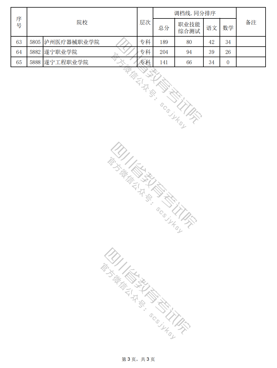 四川省2024年高職單招中職類(護理類)調(diào)檔線,最高分為樂山樂山職業(yè)技術(shù)學(xué)院,294分